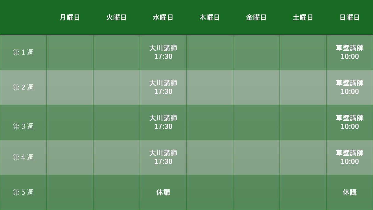 水曜日の夕方と日曜日午前クラスが選べる